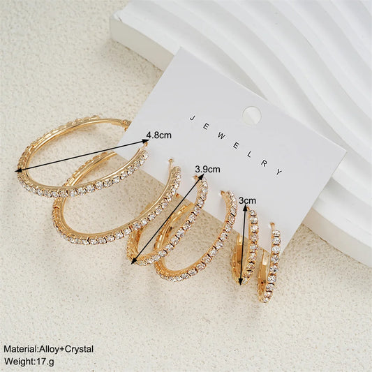 6PCS Exaggerated Big Gold Plated Crystal Rhinestone Hoop Earrings Set for Women Shiny Circle Earring Party Banquet Jewelry Gift