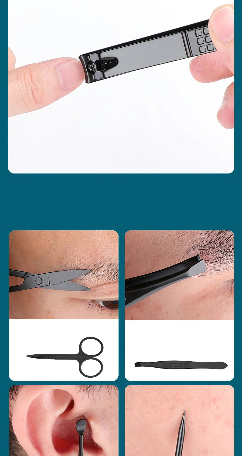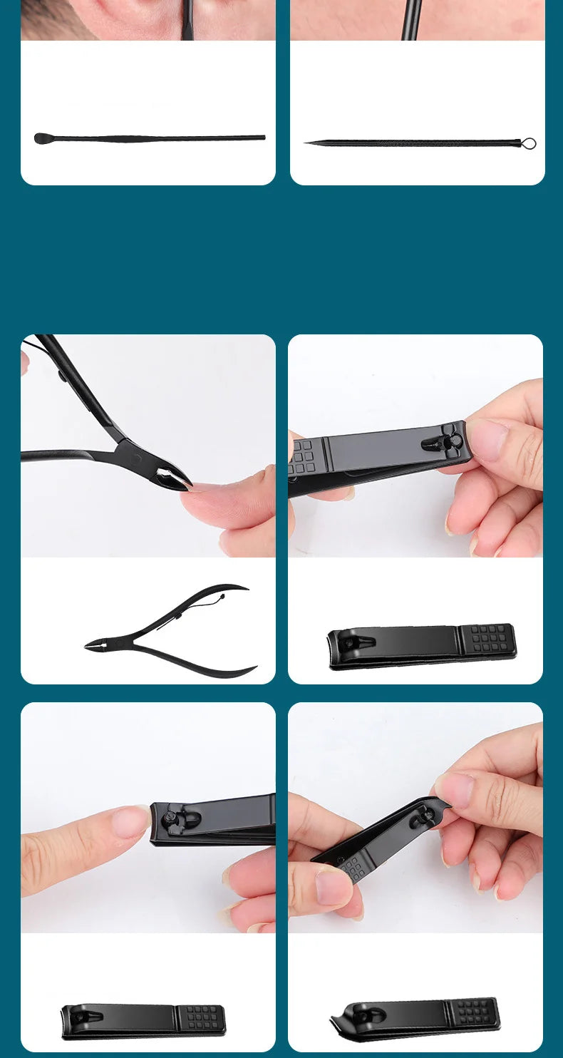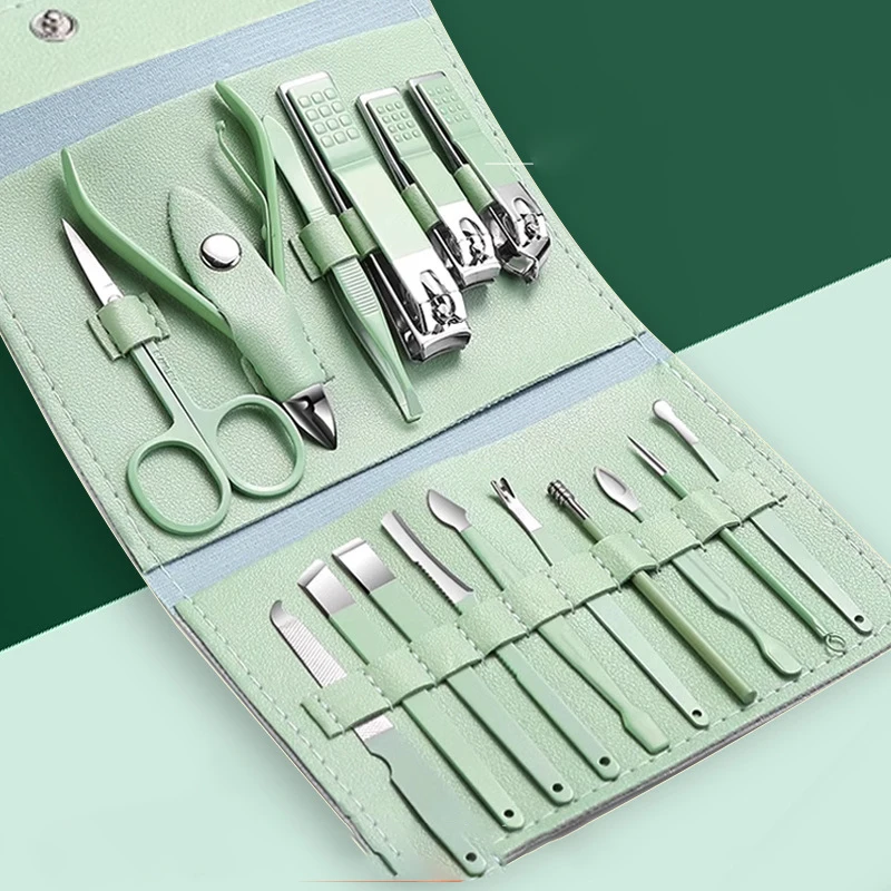 16PCS Brown Nail Cutter Set Stainless Steel Nail Clippers With Folding Bag Manicure Cutter Kits Scissors Makeup Beauty Tool